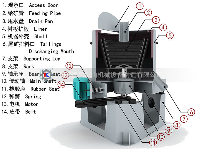 尼爾森選礦離心機(jī)是由給礦管、機(jī)架、尾礦槽、電機(jī)、傳動軸承和選礦部件等部分組成。