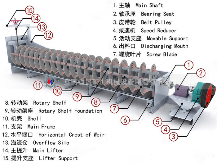 選礦螺旋分級機(jī)適用于鋰云母,鋰輝石,金,銀,鉛,鋅,銅,鉬,鐵,鉛,錳,鎢,水泥,陶瓷,重晶石,鋁土礦,石灰石,石膏,碳酸鈣,煤,石墨,長石,鉀長石,磷礦,螢石,粘土以及其他黑色與有色金屬材料。