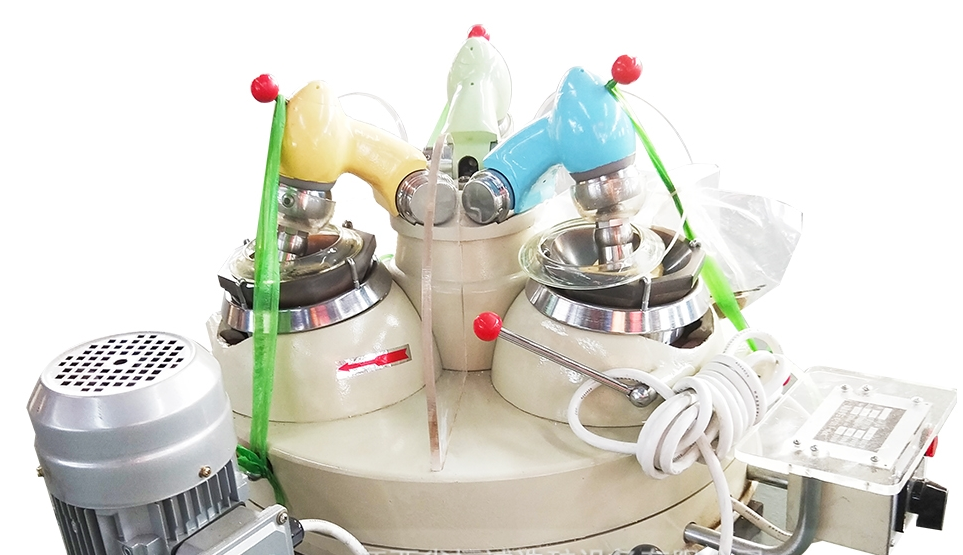 The structure of such machine is as shown in Figure to Figure. See Figure for its overall structure which is mainly composed of three sets of grinding heads, clutch, mortar support, localizer, etc.